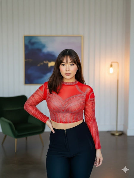 Top de brillos plata color rojo