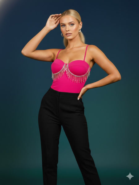 Top de tirantes con brillos tipo barbas bajo de copas