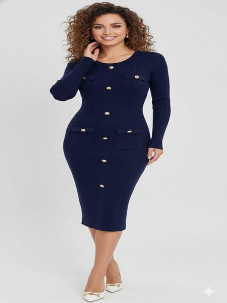 Vestido de manga larga con botones dorados color azul marino