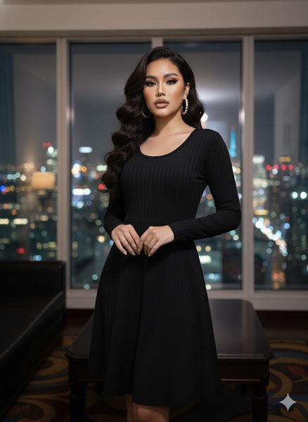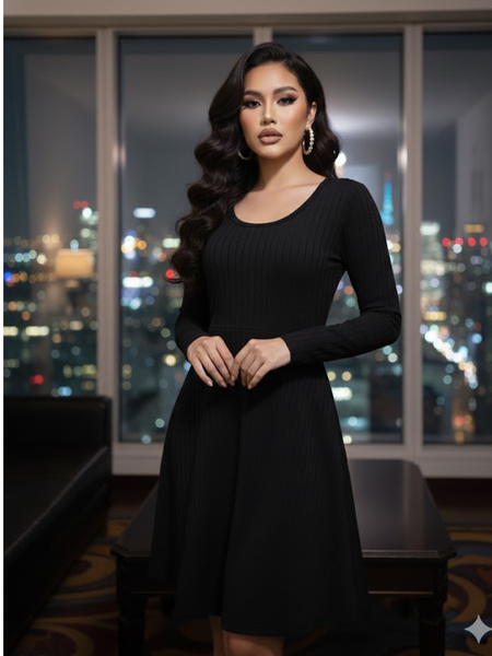 Vestido de cuello redondo corte A color negro